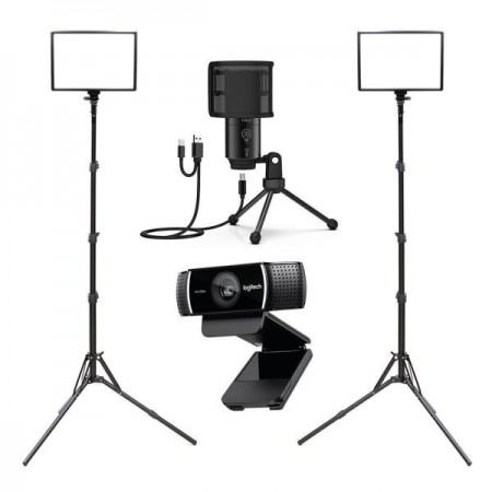 • [오토케] PC방송장비 풀세트 레벨5 투스탠드 큐브라이트45 LED 조명 2개/로지텍 C922/FIFINE K433A > 영상가전